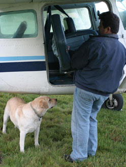 George also removes a front seat from the 185. Once in the air, he will transition from the backseat and sit cross-legged in this space in order to take head-on shots of the other plane.