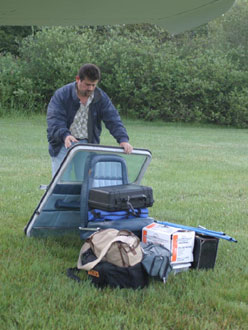 Everything needs to be unloaded from the plane before a photo shoot to keep it light and safe (it gets very windy). Some formation maneuvers require that John fly the 185 at slow speeds and it is important not to carry any unnecessary excess weight.