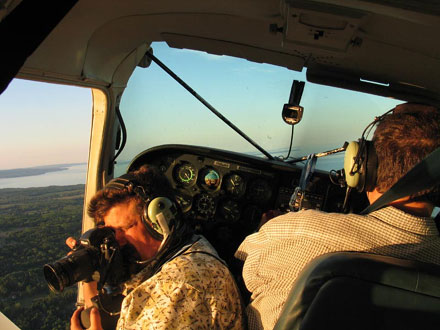 George shoots away while John flies formation. Communication between the two of them is critical - George instructs John on which positions give the best photo and John reacts accordingly within safe limits and relays the information to the other plane.